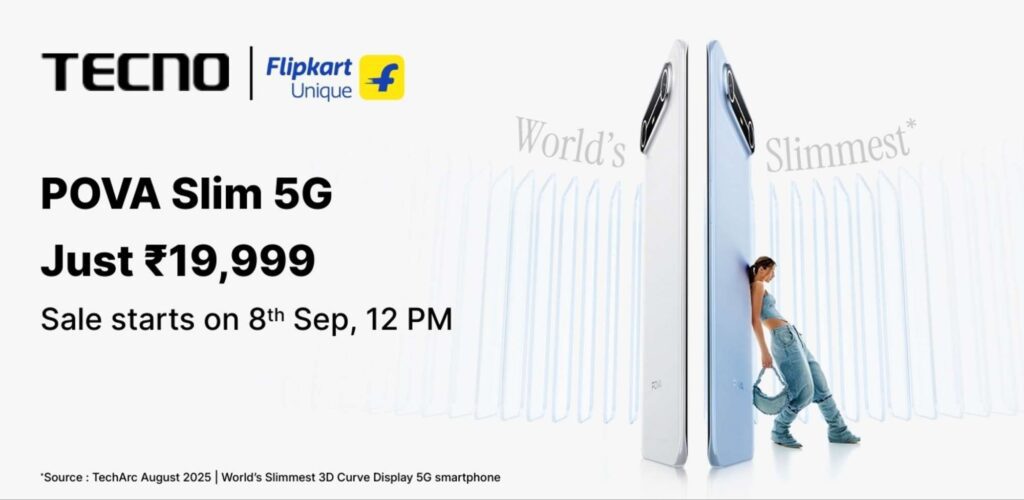 Tecno has launched the world’s thinnest curved display smartphone, the pova Slim 5G, in India. The main highlight of this phone is that it is the world’s thinnest phone, measuring just 5.95 millimeters